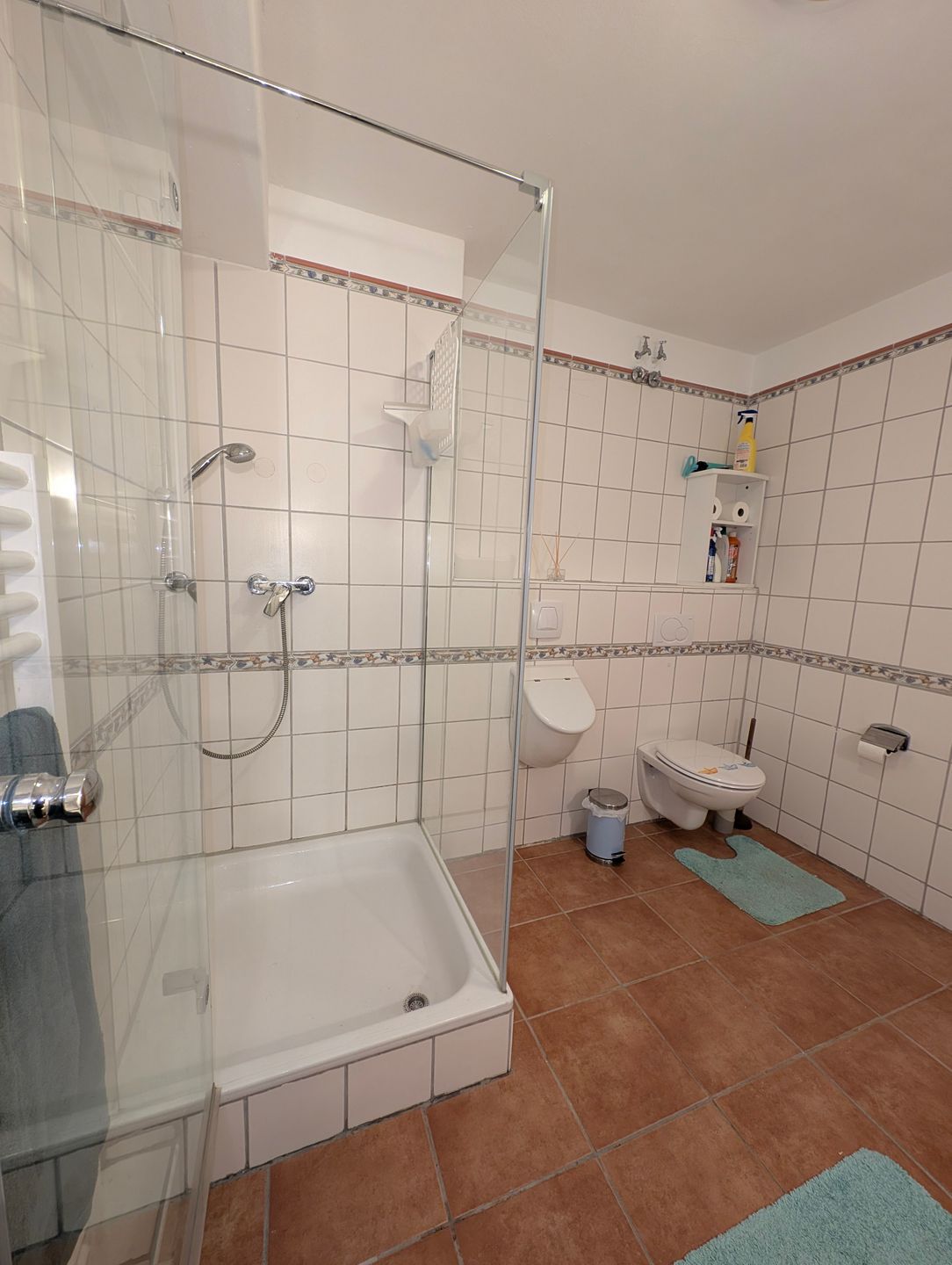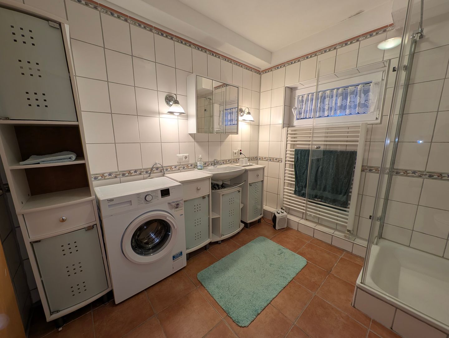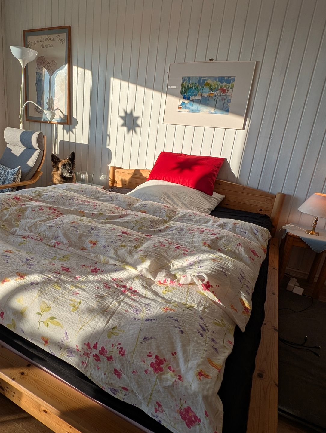 Die Wohnung ist so gemütlich, dass selbst der Hund denkt, er sei der König des Hauses! Vom Doppelbett können Sie in süße Träume versinken oder Sie können mit SAT-TV und WLAN selbst beim Schauen von Hundevideos entspannen – das ist schließlich auch wichtig für die Erziehung! Lesen Sie eins der zahlreichen Bücher aus dem Bücherregal, die zum Teil von der Vermieterin selbst geschrieben wurden. Die Küchenzeile ist bestens ausgestattet, um das perfekte Leckerli für Ihre Fellnasen zu zaubern. Und wenn das große Badezimmer (sep. über einen kleinen Flur erreichbar) mit Dusche, WC und Bidet nicht für Entspannung sorgt, dann wissen wir auch nicht weiter! Und dann steht Ihnen noch eine Waschmaschine, Bügeleisen, und-Brett zur Verfügung.
