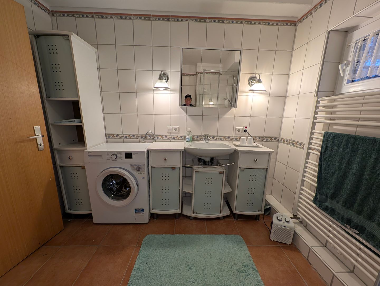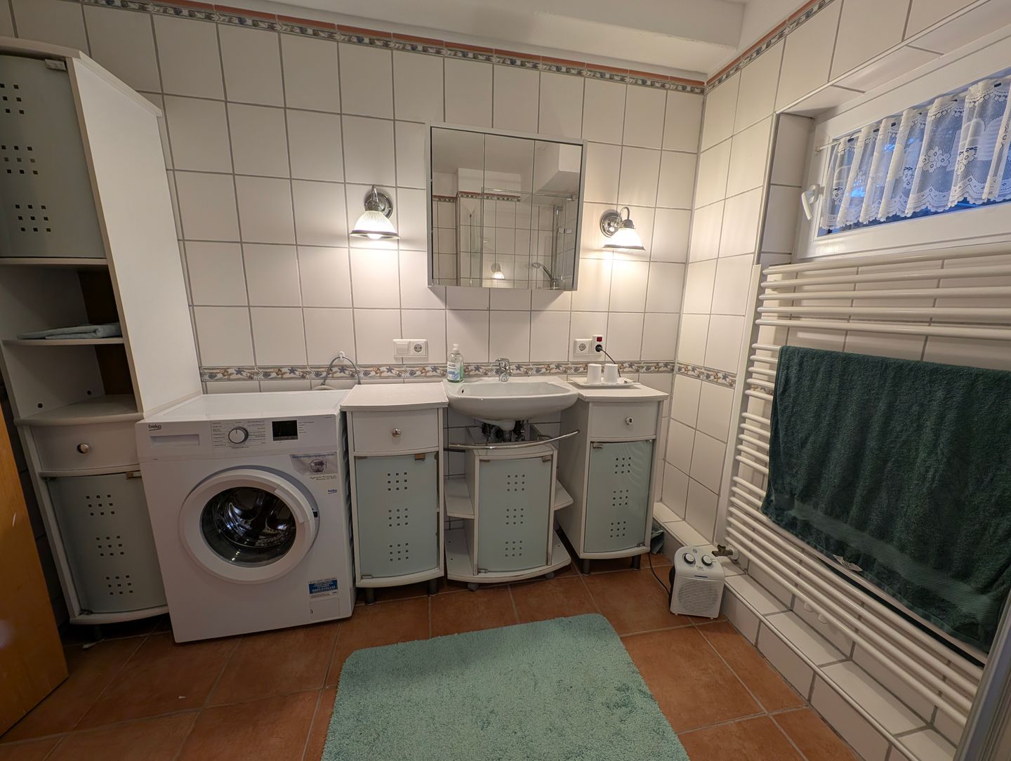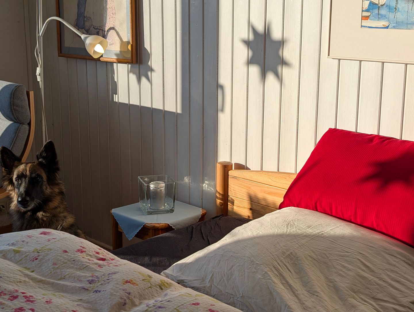 Die Wohnung ist so gemütlich, dass selbst der Hund denkt, er sei der König des Hauses! Vom Doppelbett können Sie in süße Träume versinken oder Sie können mit SAT-TV und WLAN selbst beim Schauen von Hundevideos entspannen – das ist schließlich auch wichtig für die Erziehung! Lesen Sie eins der zahlreichen Bücher aus dem Bücherregal, die zum Teil von der Vermieterin selbst geschrieben wurden. Die Küchenzeile ist bestens ausgestattet, um das perfekte Leckerli für Ihre Fellnasen zu zaubern. Und wenn das große Badezimmer (sep. über einen kleinen Flur erreichbar) mit Dusche, WC und Bidet nicht für Entspannung sorgt, dann wissen wir auch nicht weiter! Und dann steht Ihnen noch eine Waschmaschine, Bügeleisen, und-Brett zur Verfügung.