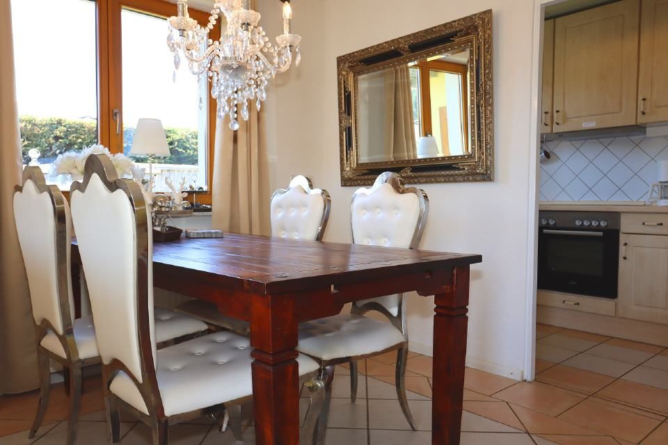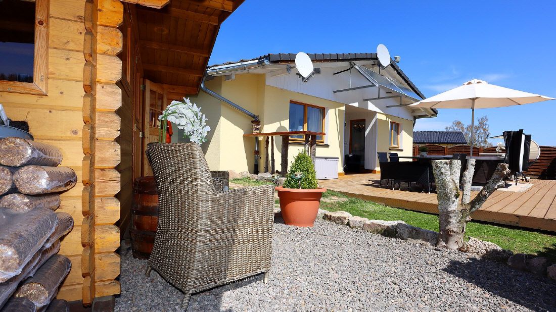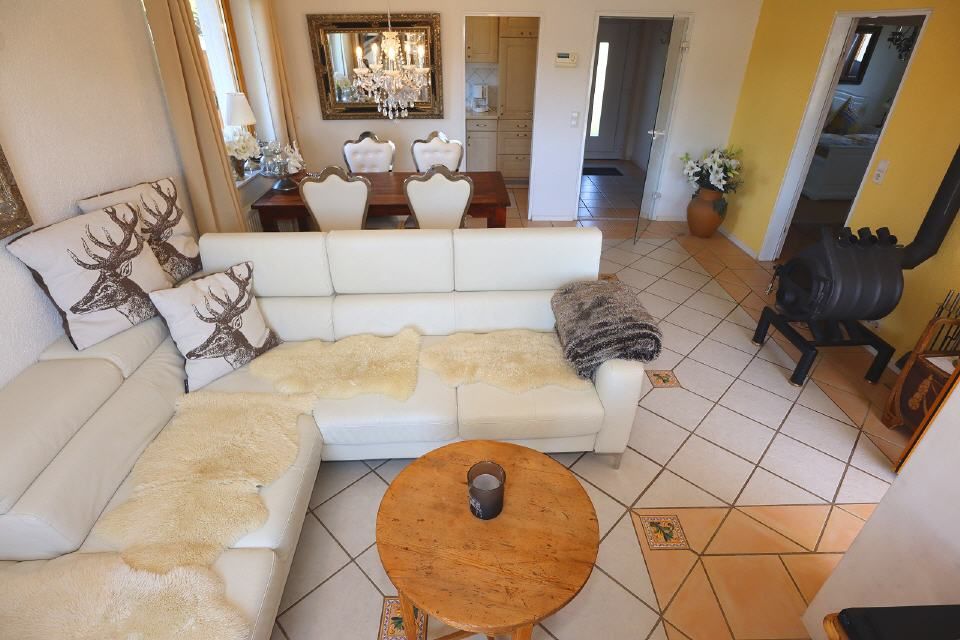 Einrichtung. Wohnfläche ca 90 qm. Großer Wohn-Essraum mit Sitzgruppe, Esstisch. Der Bollerofen sorgt in der kühlen Jahreszeit für gemütliche Athmosphäre. Komplett eingereichtete Küche. 2 Schlafzimmer. Badezimmer mit Dusche/ Wanne/ WC/ Waschbecken. Großer Garten mit Terrasse, Whirlpool und Fasssauna