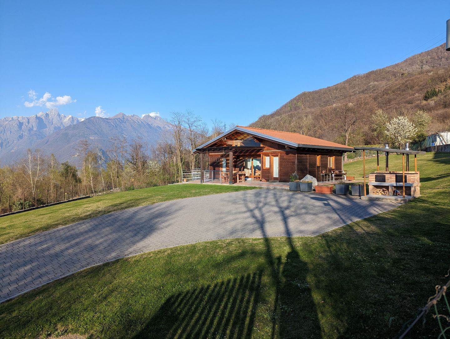 freistehende urige Blockhaushütte für bis 5 Personen in fantastischer Panoramalage in Colico am Comer See mit rießigem eingezäunten Garten und Seeblick