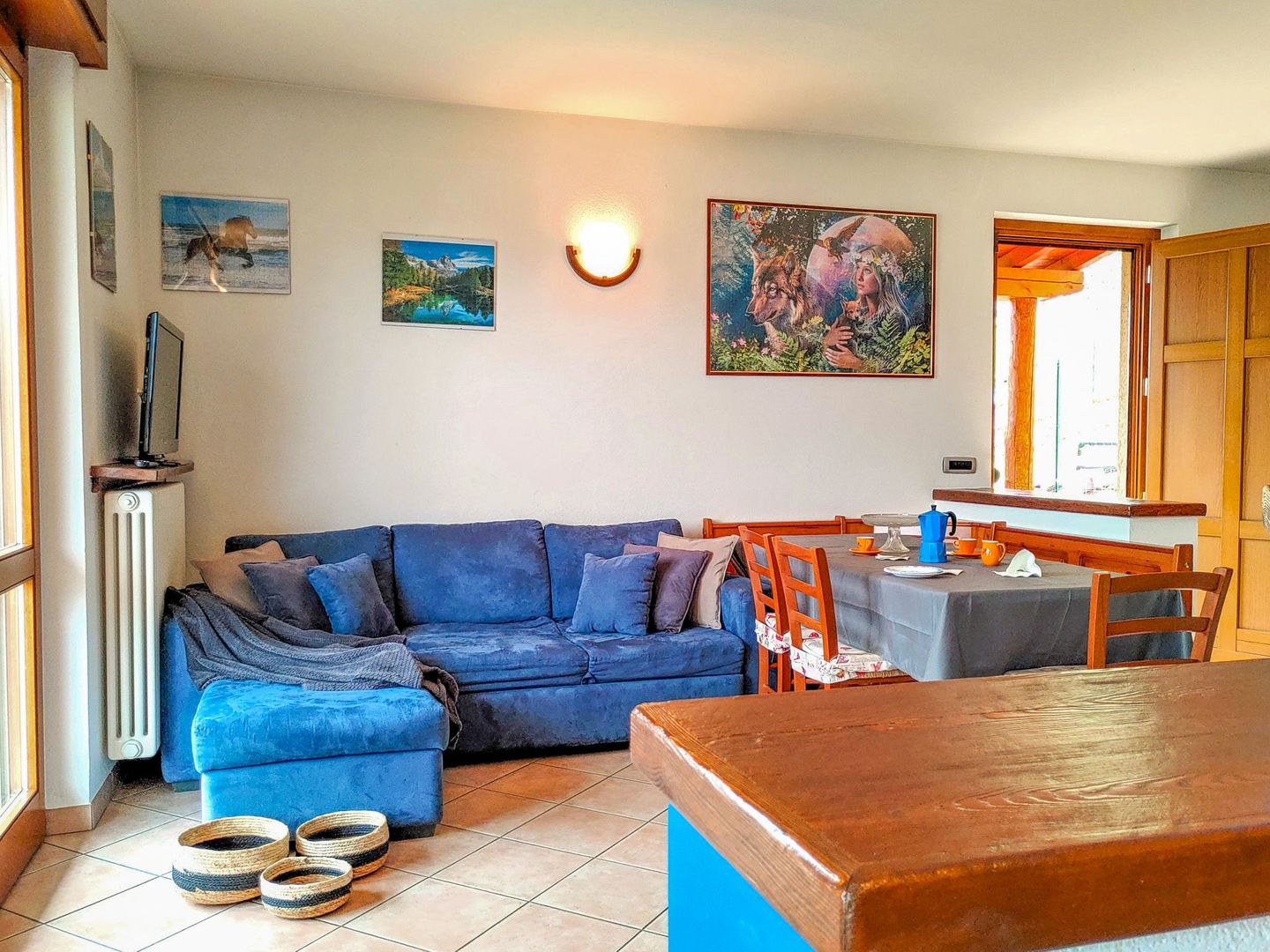 Die Wohnung ist ein wahres Schmuckstück, das mit liebevollen lombardischen Holzmöbeln und einem hellen Fliesenboden zum Verweilen einlädt. Im geräumigen Wohn- und Essbereich können Sie mit Freunden oder Familie schlemmen und dabei den Panoramablick auf die Berge bewundern. Und keine Sorge, das Sofa ist perfekt für eine kleine Siesta nach dem Essen!