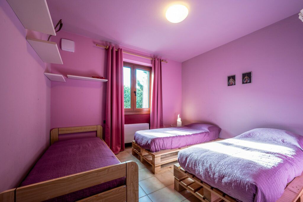 Einrichtung: Wohnfläche ca. 104 qm. Über 4 Stufen erreichen Sie den Eingangsbereich. Helles Wohnzimmer mit Couchgarnitur, TV, Wohnwand, WLAN, Fliesenboden. Komplett und gut eingerichtete Küche mit Essplatz und in fröhlicher Farbe gestrichen: Toaster, Mikrowelle, Geschirrspüler, Kühlschrank, Gefrierschrank, Kaffeemaschine, MixerMixer, Wasserkocher, Abfalleimer, Geschirr und Besteck, Herd (Gas). Schlafzimmer mit Doppelbett und Kleiderschrank. Badezimmer mit Wanne mit Duschvorrichtung, Waschbecken, WC. Das Rosa Schlafzimmer bietet 3 Einzelbetten. Schlafzimmer mit 2 Einzelbetten und Ausgang in den Garten. Weiteres Badezimmer mit Dusche (Massagefunktion), Waschbecken, WC, Föhn.