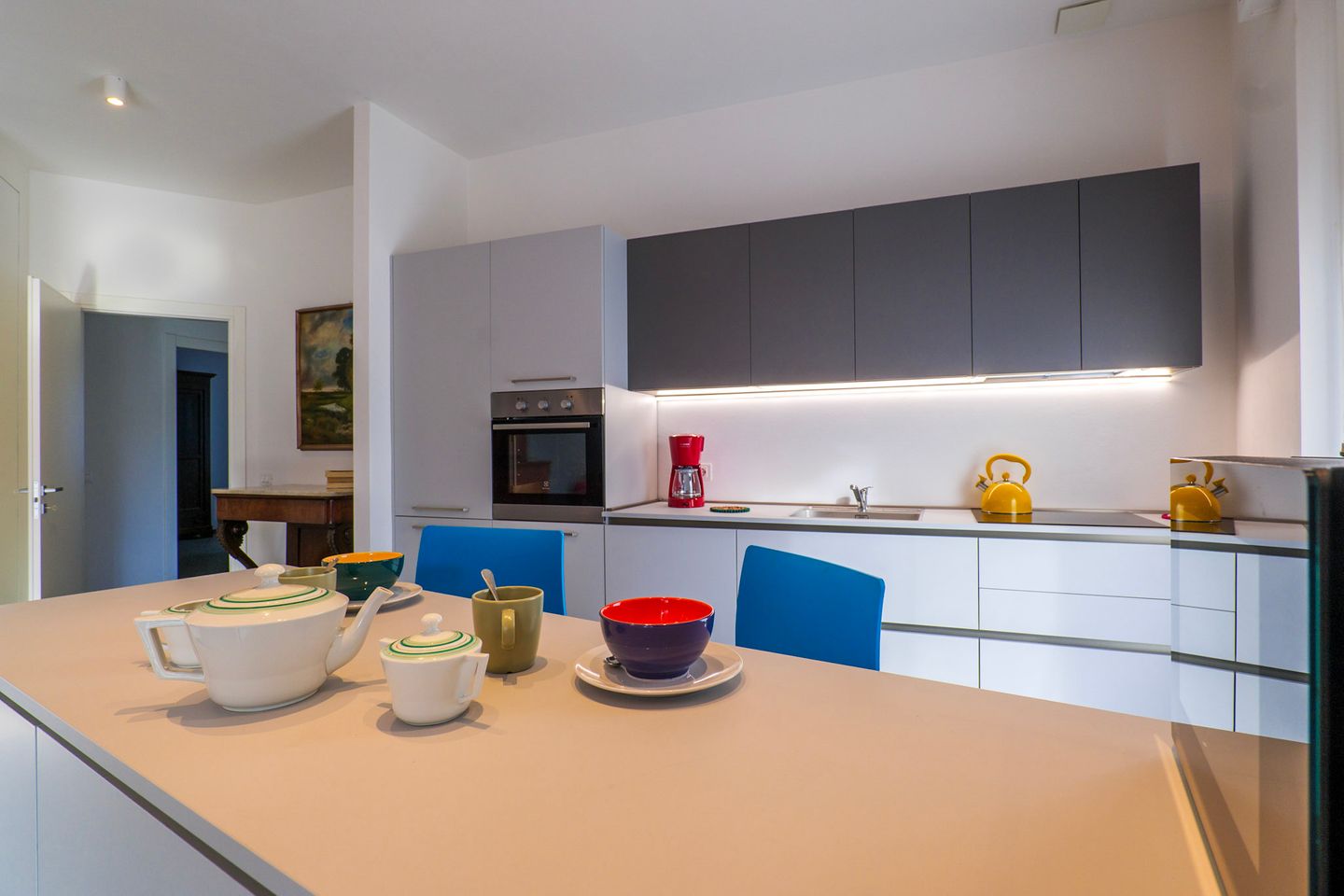 Umgebung: Zentrale und sonnige Lage nur ca. 150 m vom öffentlichen Strandbad, dem See und der Seeuferpromenade entfernt. Restaurants, Bars und Lebensmittelgeschäfte sind bequem zu Fuß erreichbar. Seesicht. Zwei private Autoabstellplätze. Bis 6 Personen.