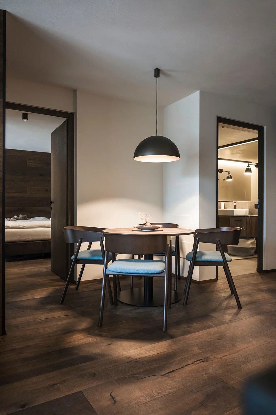 Einrichtung: Die Ferienwohnung wurde 2025 komplett neu renoviert. Sie hat einen sep. Eingang von der kleine Dorfstraße, die zum Hotel führt, nur wenige Meter entfernt. Eingang mit Garderobe in die offene Wohn/Küche mit Ausgang in den Garten. Die Küchenzeile ist mit Herd, Backofen, Spülmaschine, Kaffeemaschine ausgestettet. Sofa, TV, Essplatz für 4 Personen. Schlafzimmer mit Doppelbett (Boxspringbett) und Ausgang n den Garten. Schlafzimmer mit Einzelbett. Schickes Badezimmer mit Regenwalddusche, Waschbecken, WC/ Bidet. Kleiner Garten direkt vor der Türe. Abgeschlossener Gartenbereich.
